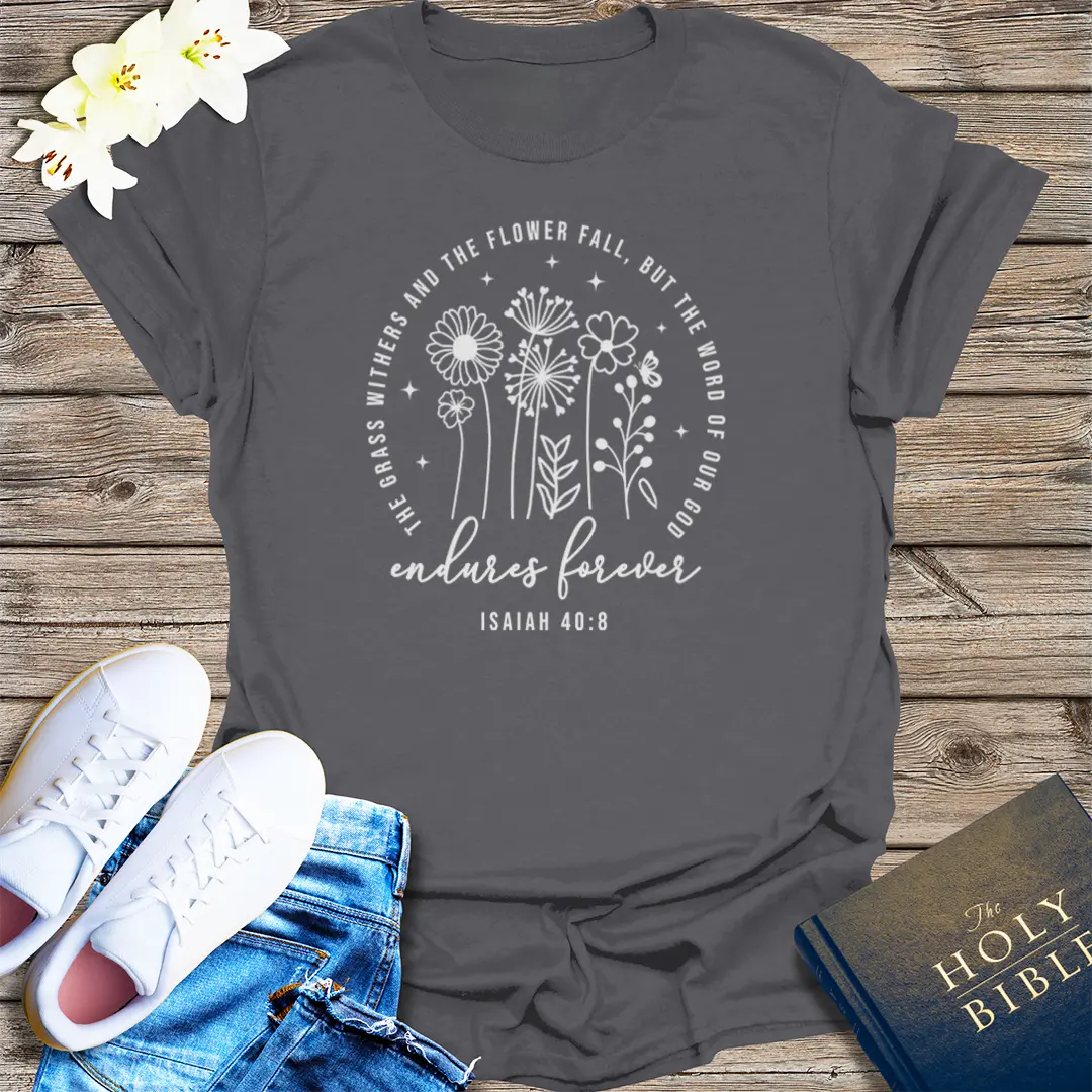 Make a bold, faith-filled statement with our 'Word of God Endures Forever' T-Shirt. Featuring playful typography and a powerful message, this tee is perfect for sparking conversation and sharing hope everywhere you go.